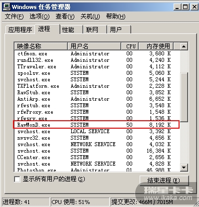 回复:瑞星软件占用我50%内存,任务栏里无法结束任务