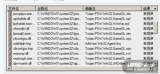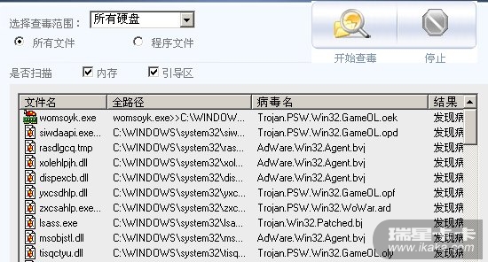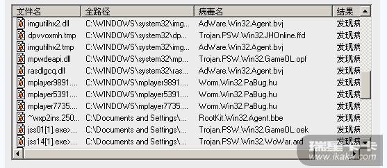 今天刚才又出现同样的情况,瑞星被毒再一次给杀了。 没办法,我用瑞星在线免费查毒的,进行了全盘查毒。查到一堆毒。 (我是个电脑盲,感觉这些就是木马一类的,不知道这毒到底有多厉害,电脑里面存放了一些游戏的账号和密码。也不知玩完了没有。)