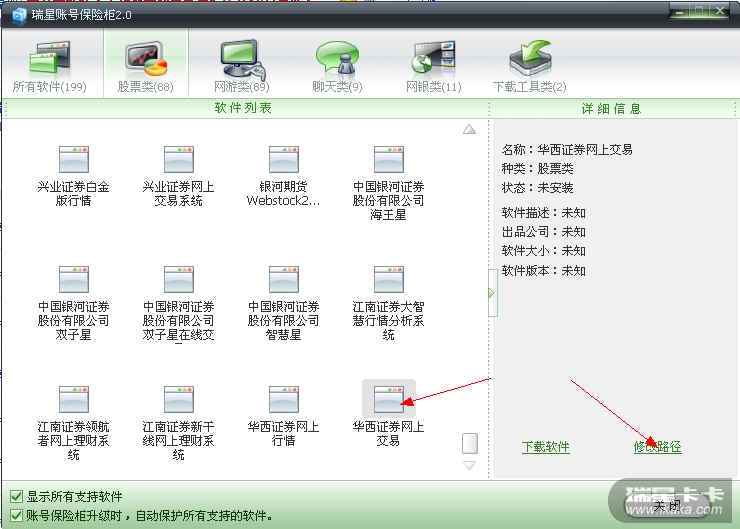 回复: 瑞星账号保险柜为什么检测不到华西证券呢?