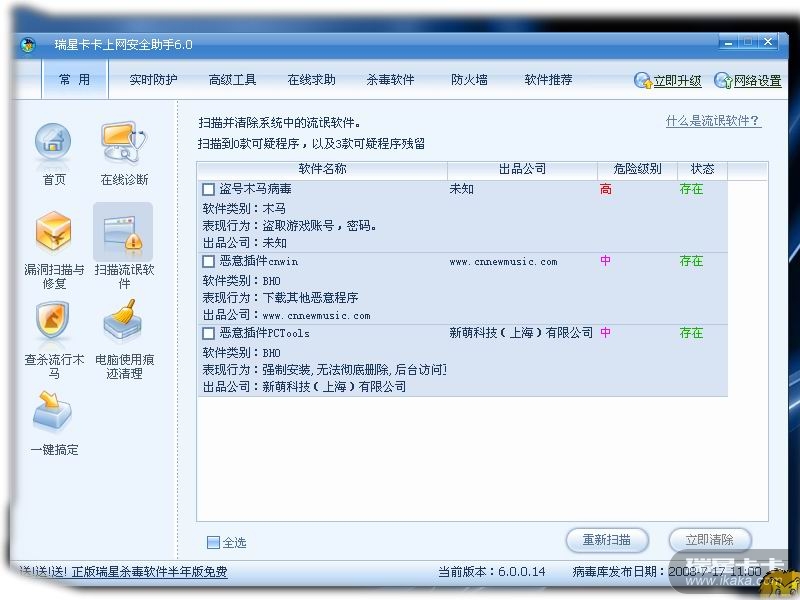 病毒病毒 2008-07-19 19:24:34 病毒在文件C:\PROGRAM FILES\INTERNET EXPLORER\IEXPLORER.EXE中 Win32.Hack.xxxCrypt.a.32768 拦截成功(文件被禁止访问)