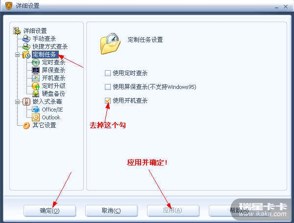 在瑞星2008软件设置中,关闭了开机检测选项,可是在下次开机时,还是会执行自动检测,不知道是什么原因.谁能帮忙解决一下,十分感谢!