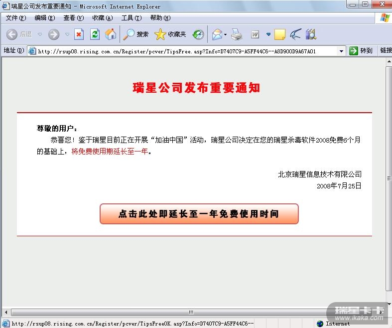 刚刚跟你说完,我自己的瑞星也弹出上面的网页