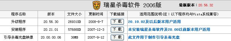 可是瑞星产品升级更新服务中却显示为20.56.32,然后我又将20.56.32版下载到电脑中重新安装,却显示说已