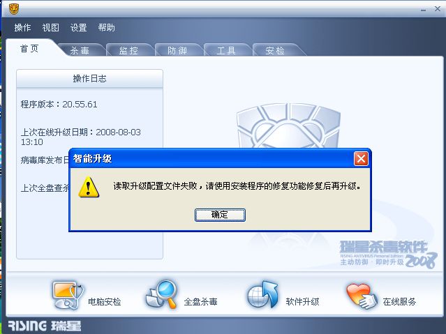 [求助] 瑞星杀毒不可以升级 救命啊..