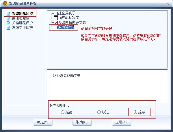 在安装驱动时先暂时【禁用所有监控】安装完了再打开