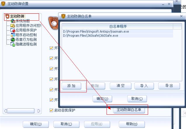 怎么把D:\梦幻西游\MY.EXE加入主动防御白名单?弹出的提示框上不可以点啊,就右上角有个可以关的XX