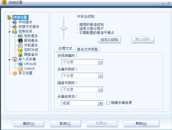 为什么我的瑞星下载版手动查杀的处理方式不能更改