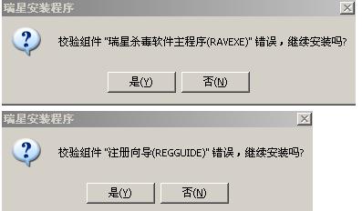 求救高手 瑞星杀毒软件主程序RAVEXE错误.校验组件REGGUIED错误