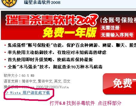 以前一直用AVAST,后来看杂志上一篇文章介绍瑞星还不错,就把AVAST卸了,准备装瑞星,装到一半系统突然蓝屏,重启后发现瑞星确实装上了,不过监控功不能使用,提示我安装失败让我重新安装。于是我费了好大劲才把刚才装的卸掉,因为自带的卸载程序无法使用,一打开就提示“只能删除当前用户...."这个警告,第二遍就更好了,装完重启电脑直接进不了系统了,提示我“软件或硬件的问题导致系统启动失败......",检测了一番主板自检很正常,排除了硬件故障,那就是软件了,后来我发现XP系统也进不了,因为我装的VISTA和XP双系统,没办法只好全盘格式化,真是恼火,明明不支持VISTA还写上支持VISTA,这不是害人吗。早知道我老老实实用AVAST,用什么破瑞星啊,搞出这么多麻烦