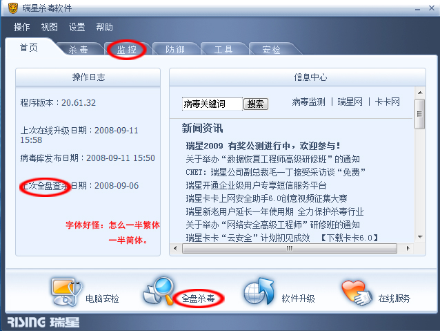 瑞星的字体好怪啊,半简半繁的,其他软件也是,看的特别难受,是不是中毒啦?