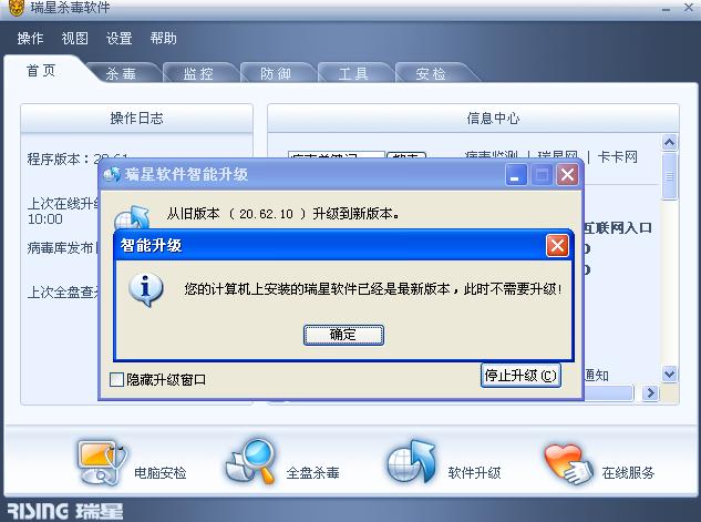 瑞星现在的最新版本都是20.65了,为什么不让我升级啊,已经快一个月了