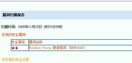 回复:windows vista sp1系统 安装了瑞星最新版本,扫描漏洞,检测一个,但是安装不到。