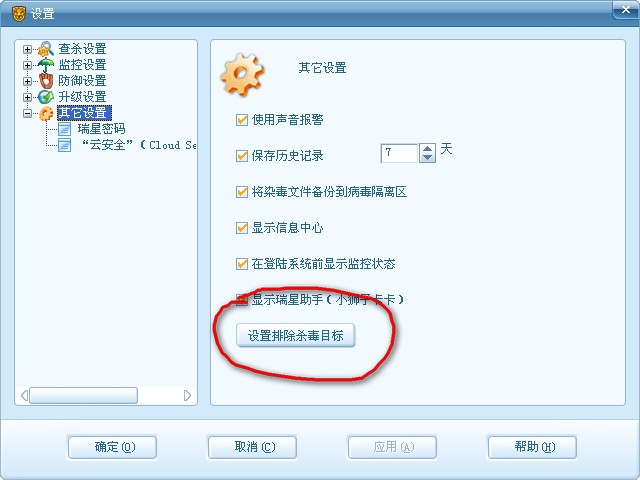 以前的瑞星杀毒版本中有,“主界面设置—监控设置—文件监控—设置排除目标—文件白名单”,升级后没这项了,是放在其他菜单中了,还是删除这项功能了????急需