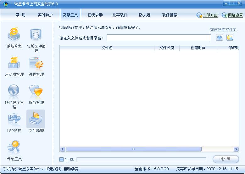 回复:瑞星杀毒软件2009 右键没有粉碎功能
