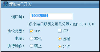 在防火墙端口开关中增加:16000,443;TCP;远程;放行,设置方法见截图。