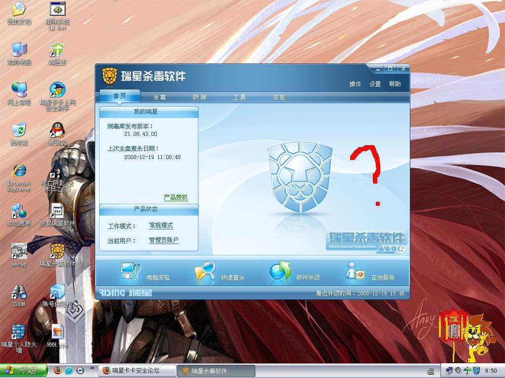 修复瑞星杀毒程序。修复方法: