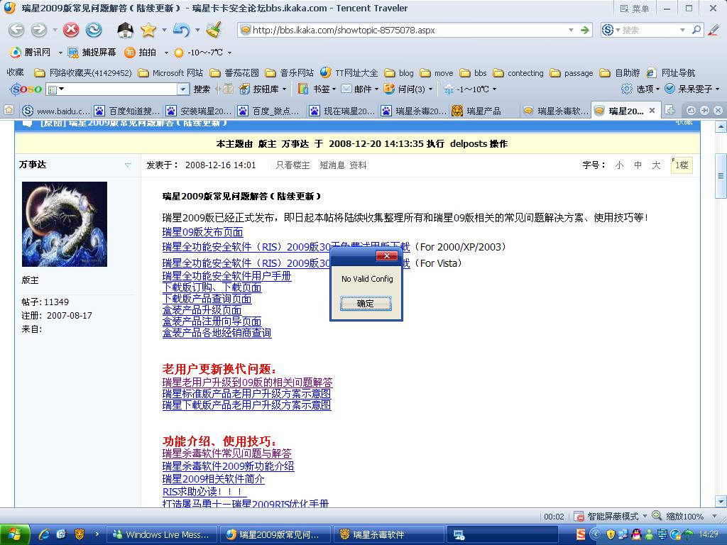 跳出来的是no vaid字样,尝试从控制面板的添加删除软件卸载,没有找到瑞星杀毒软件,