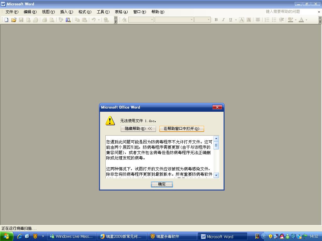 不能全盘杀毒,打开office文档无论是word还是excel,