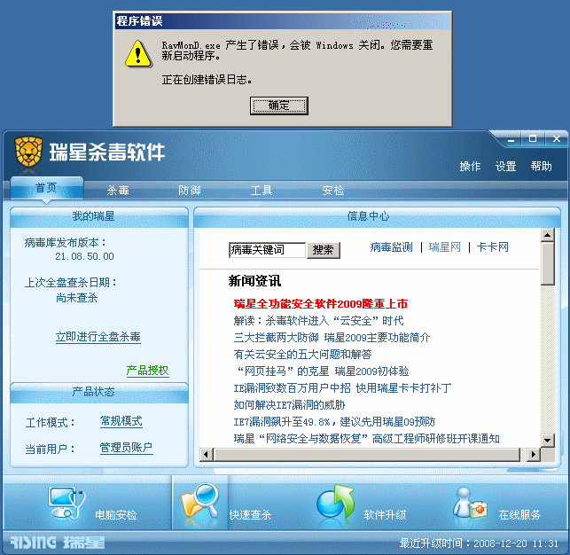 360卫士、新毒霸破坏瑞星杀毒导致升级失败(升级提示XXXXXXX 800006)的解决办法