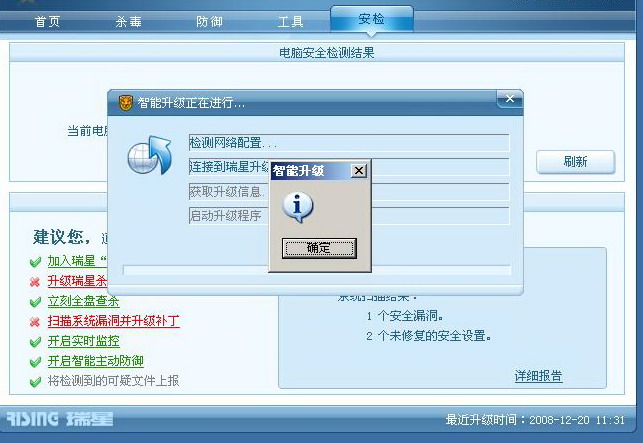 2.可以尝试从瑞星杀毒软件安装目录C:\Program Files\Rising\Rav(这是默认安装的,根据自己情况而定)下找到downloads这个文件夹,并删除,重新升级。如果还有问题,卸载杀毒软件,卸载时选择删除安装目录,重新安装,再尝试升级。