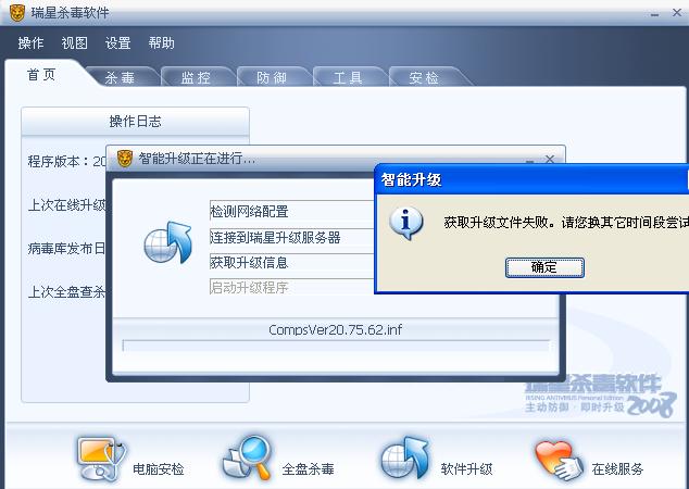 回复:为什么我瑞星升级不了啊 !! 不是网线没插!