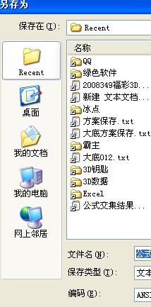2、点击“另存为”出现的对话框中,“我最近的文档”图标变成“Recent”,不知怎么恢复