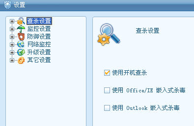lz是说没有开机查杀功能么?在这里设置一下啊?