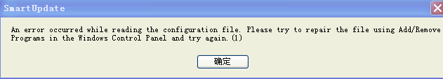 An error occurred while reading the configuration file,Please try to repair the file using Add/Remove Programs in the Windows Control Panel and try again.(1)