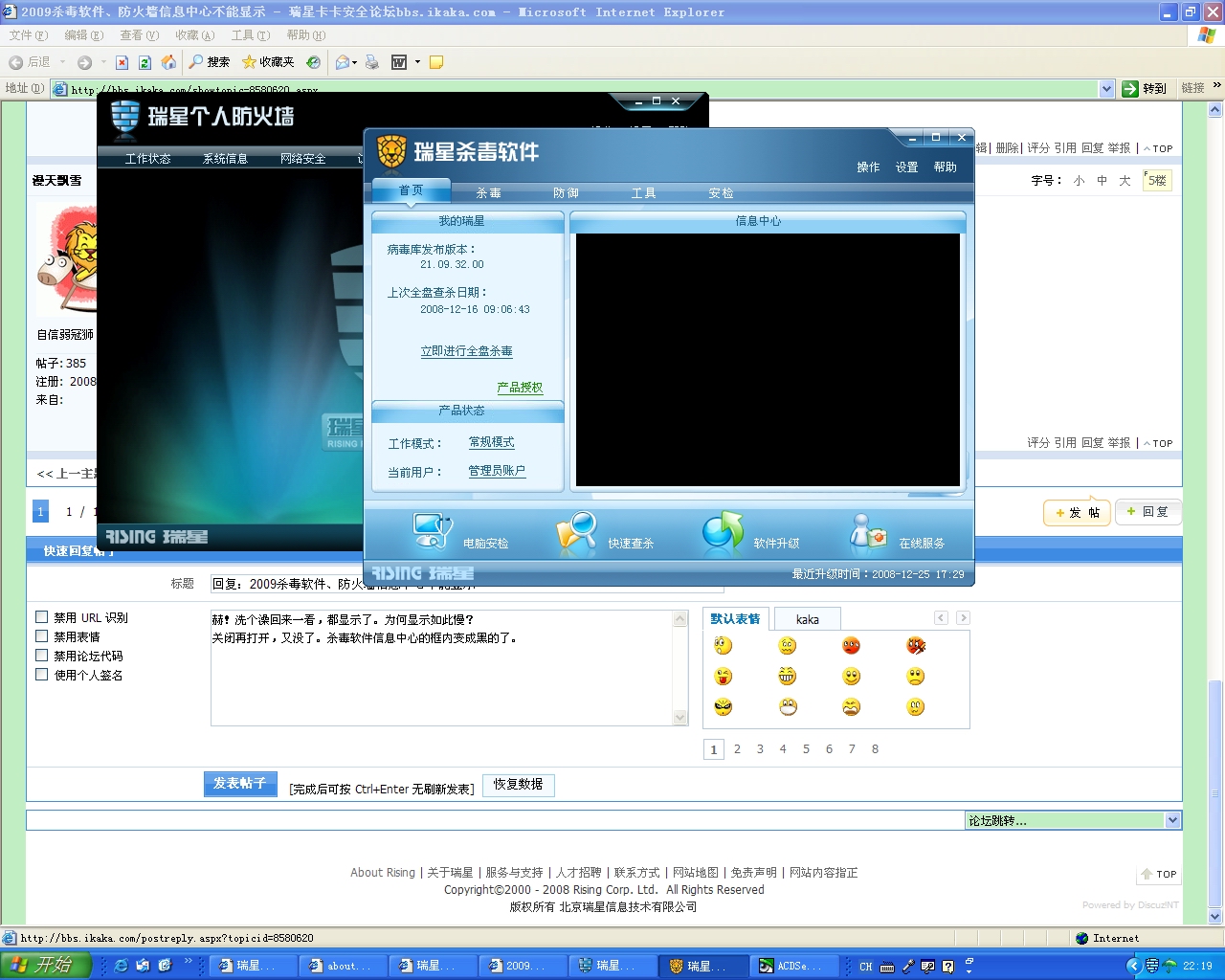 升级2009版后,发现杀毒软件、防火墙的信息中心都不能显示(已设置开启信息中心)。何故?