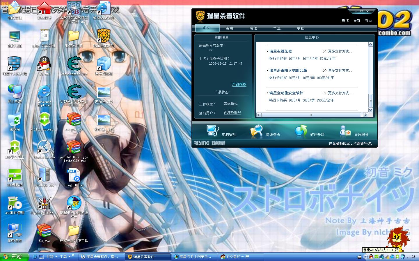 昨天晚上更新完发现瑞星不能正常工作了。。。。。。才更新成09的时候是正常的。。。。。昨天更新了31号更新以后 瑞星就很不正常,开机时候没保护。而且出现了这样的情况。。。。。。