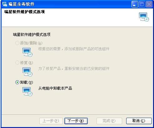进入 开始\程序\瑞星杀毒软件\修复 后只有卸载选项可选,其它选项均为灰色。请问如何解决?谢谢!