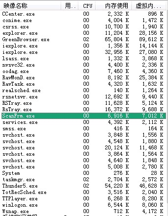 还有rsnetsvr.exe的 12M,ScanFrm.exe的7M, 将近 60M, 汗! 有时候还有那个Know.exe什么的还多