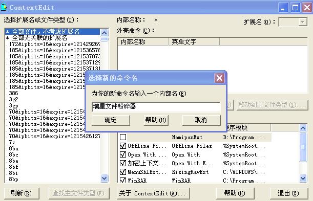 3打开ContextEdit 新建--输入瑞星文件粉碎器--确定