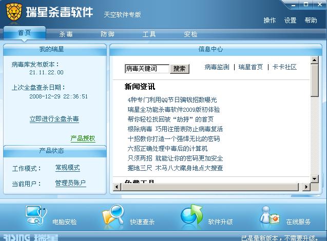还是请楼主从瑞星的官方网站下载瑞星的杀毒软件吧,个人认为性能比较稳定点。