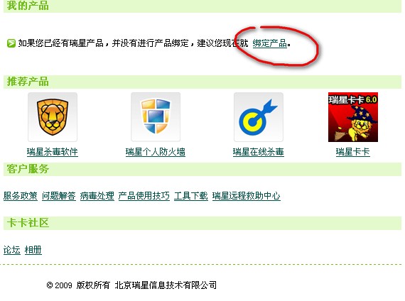 回复:版主 瑞星全功能安全软件2009 为什么不可以绑定用户