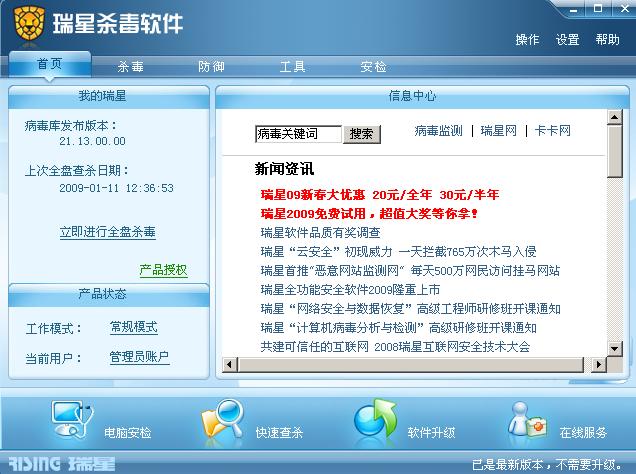 瑞星杀毒软件2009公测