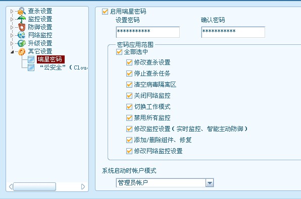 瑞星密码在设置,详细设置, 其他设置,瑞星密码