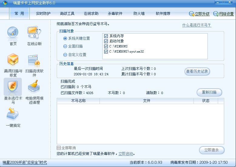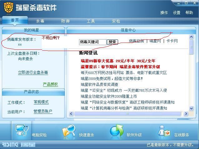 我的杀毒软件一升级就查杀不了,不知道杂么了,我还以为是系统的问题后从新中安装系统同全盘格式,刚安装进去就可以杀毒,但一升级后就不能杀毒~~~