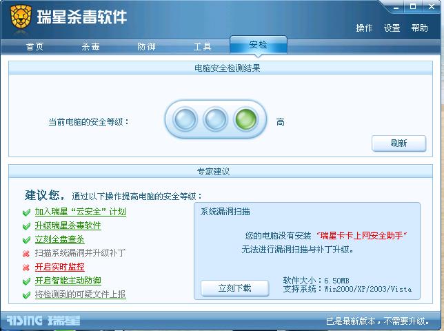呵呵,不是不行呀,我卸载了瑞星重新安装也不行。没有办法,我换了金山毒霸,倒是杀了两个木马,金山一切正常,看来瑞星还得加强自我保护呀!!