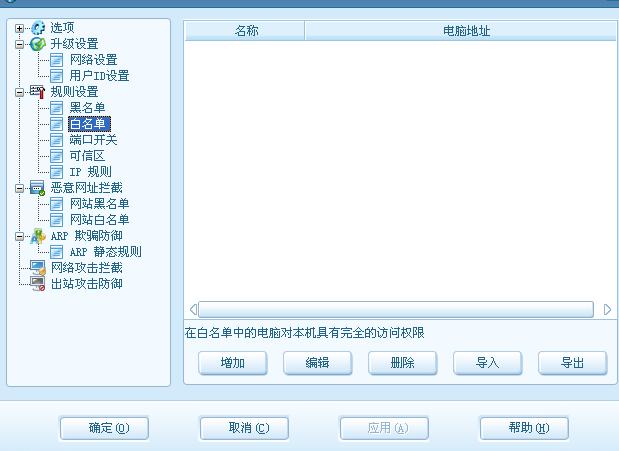防火墙的:主程序--设置--详细设置--规则设置--白名单--增加或导入即可(如图2)