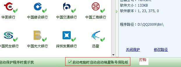 软件自带的保险柜.当我们设置好保护某软件后.机器重起后.比如保护了QQ...重启以后点QQ 它不会提示保护.而必须得把保险柜手动点开.右下角出现以后..再点 .他就提示有保护了..这个问题什么解决