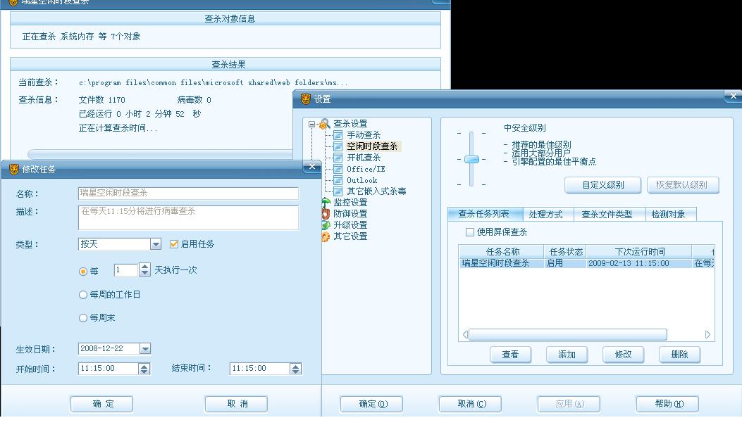 09版瑞星升级时需要要重启电脑,什么空闲时段查杀无法修改