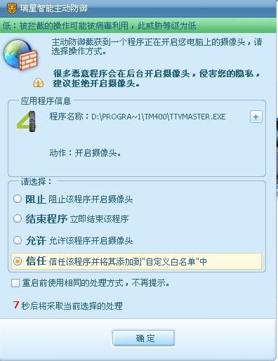 提供电视卡程序被主动防御拦截的截图或者是电视卡的驱动程序