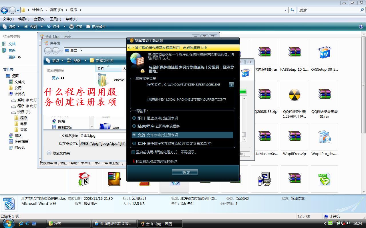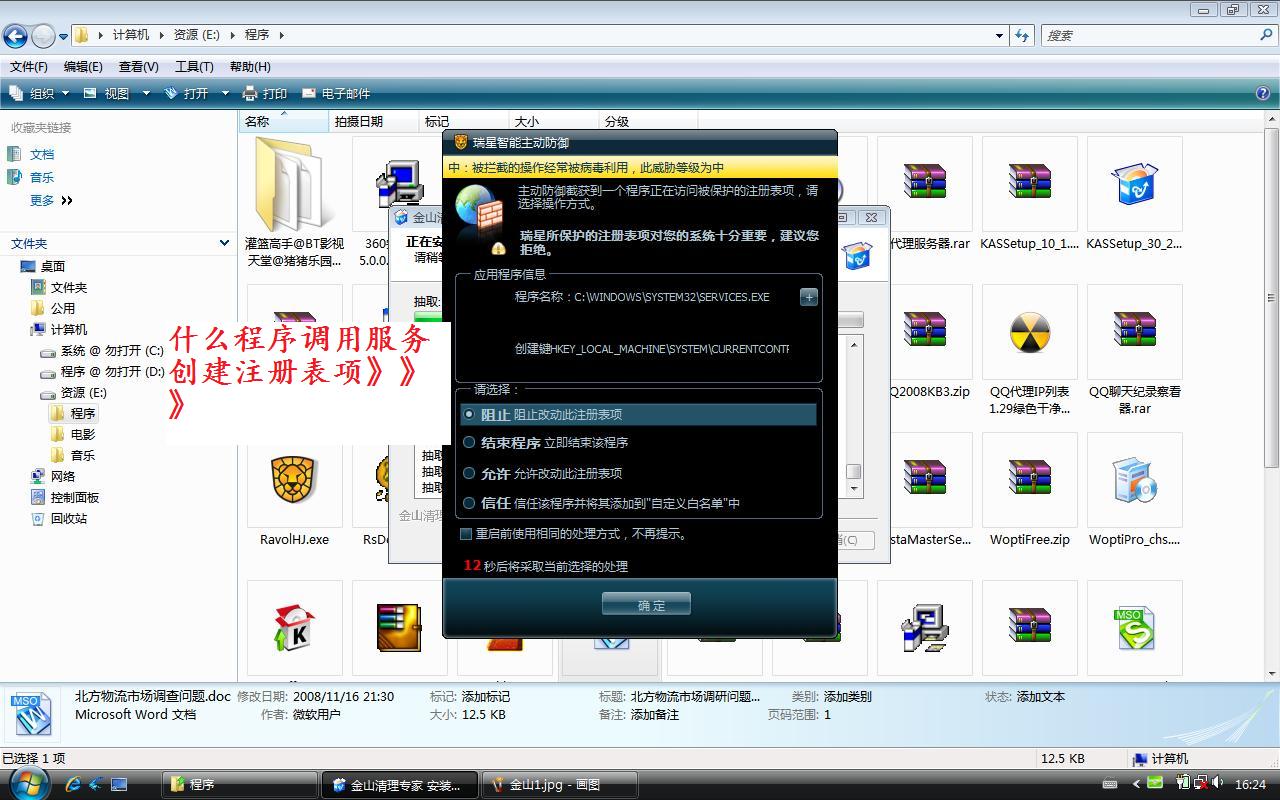 希望瑞星提示“什么程序调用系统服务创建注册表项???”