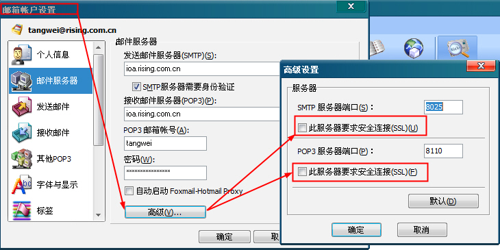请各位大大教教应该怎么设置2008,才能正常的使用foxmail