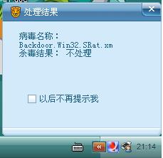 提供一下病毒具体的路径和瑞星的处理结果,是重新启动后删除还是什么?