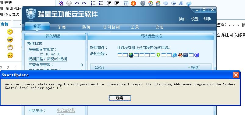 瑞星2009全功能安全软件突然无法使用,无法杀毒,无法升级,无法修复(修复选项无法选择)。。。请高手指导下~~!!急~!!!我的软件是在家安装的~~我现在外出上学~无法拿到软件重新安装···有什么办法可以修复么??