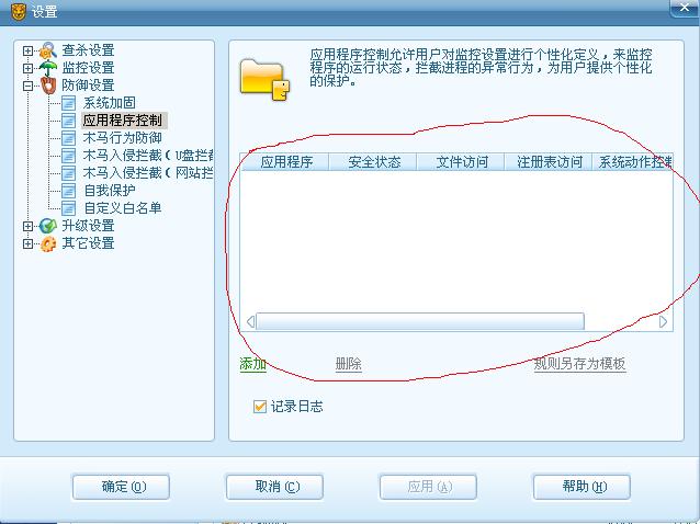 查看主动防御/应用程序控制,是否设置了规则,同时提供操作日志 中 显示“已受控应用程序数:8 ”的截图