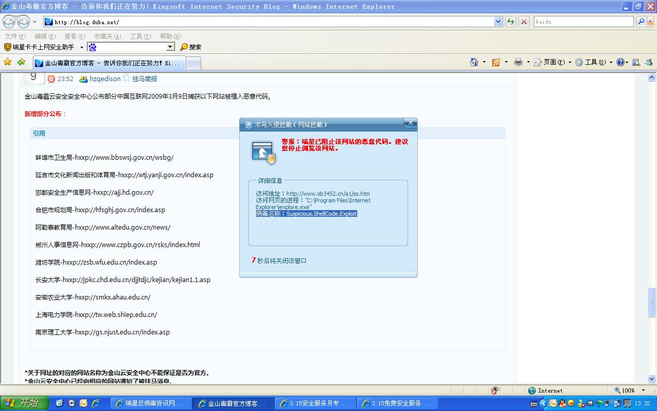 1、09的瑞星对挂马有很好的抑制作用,而且防挂马确实感觉做的比以前好,但有些地方希望瑞星能改进,就是访问挂马的网页瑞星会弹出一个对话框,上面会写明地址、网页的进程,和病毒名称,希望访问网页的进程尽可能的一行显示完毕不要托的太长看起来有些和下面的内容混为一团,其次希望病毒名称希望能用红色或者字体加粗,加大,让用户更明显的能发现到底是什么问题会弹出对话框,其次希望三个之间的行距稍为拉大一点从视觉上看起来更舒服一点,其次也能一目了然,希望瑞星能改进谢谢!