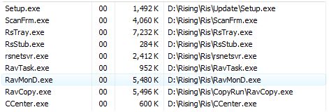 看看这两个进程吧,setup.exe,ravcopy.exe,我想强行关闭都不行,自我保护,有点过分了吧?